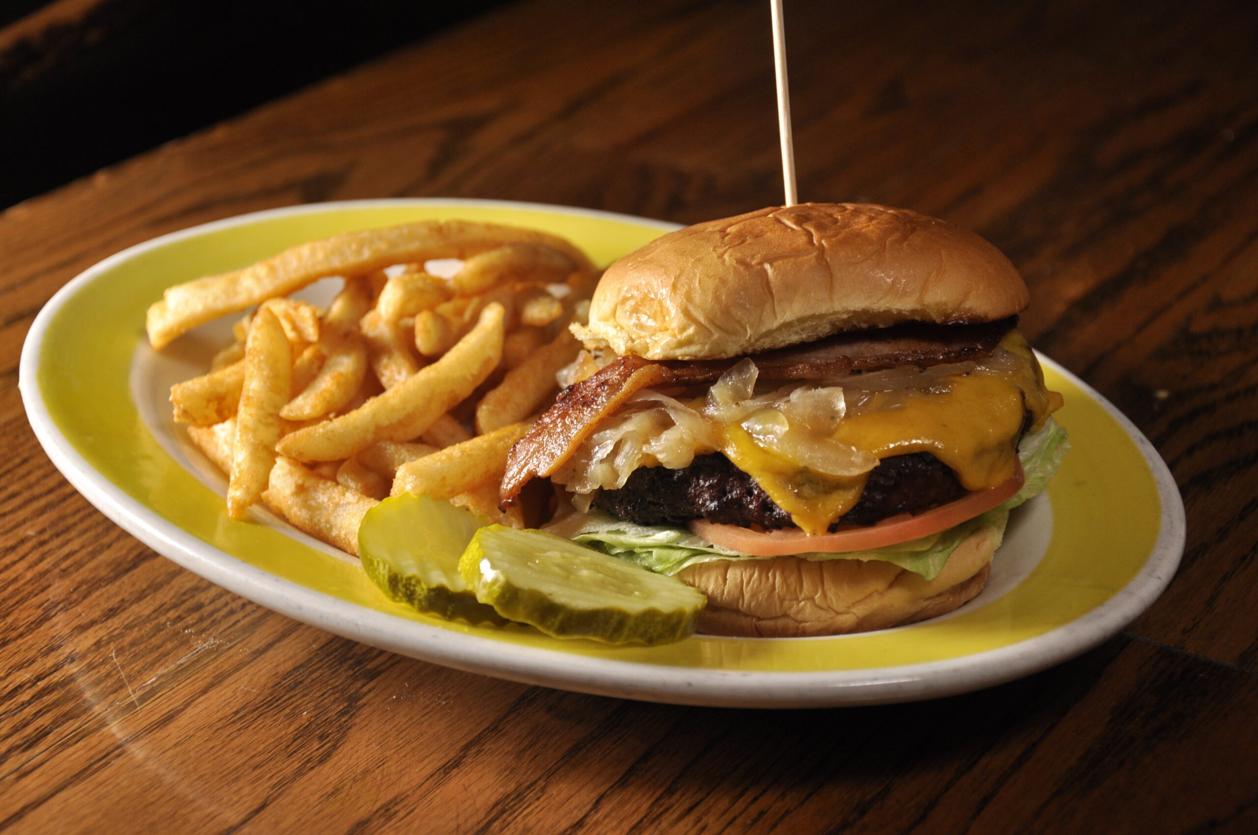 Irish bacon, cheddar cheese, sauteed onions, lettuce & tomato